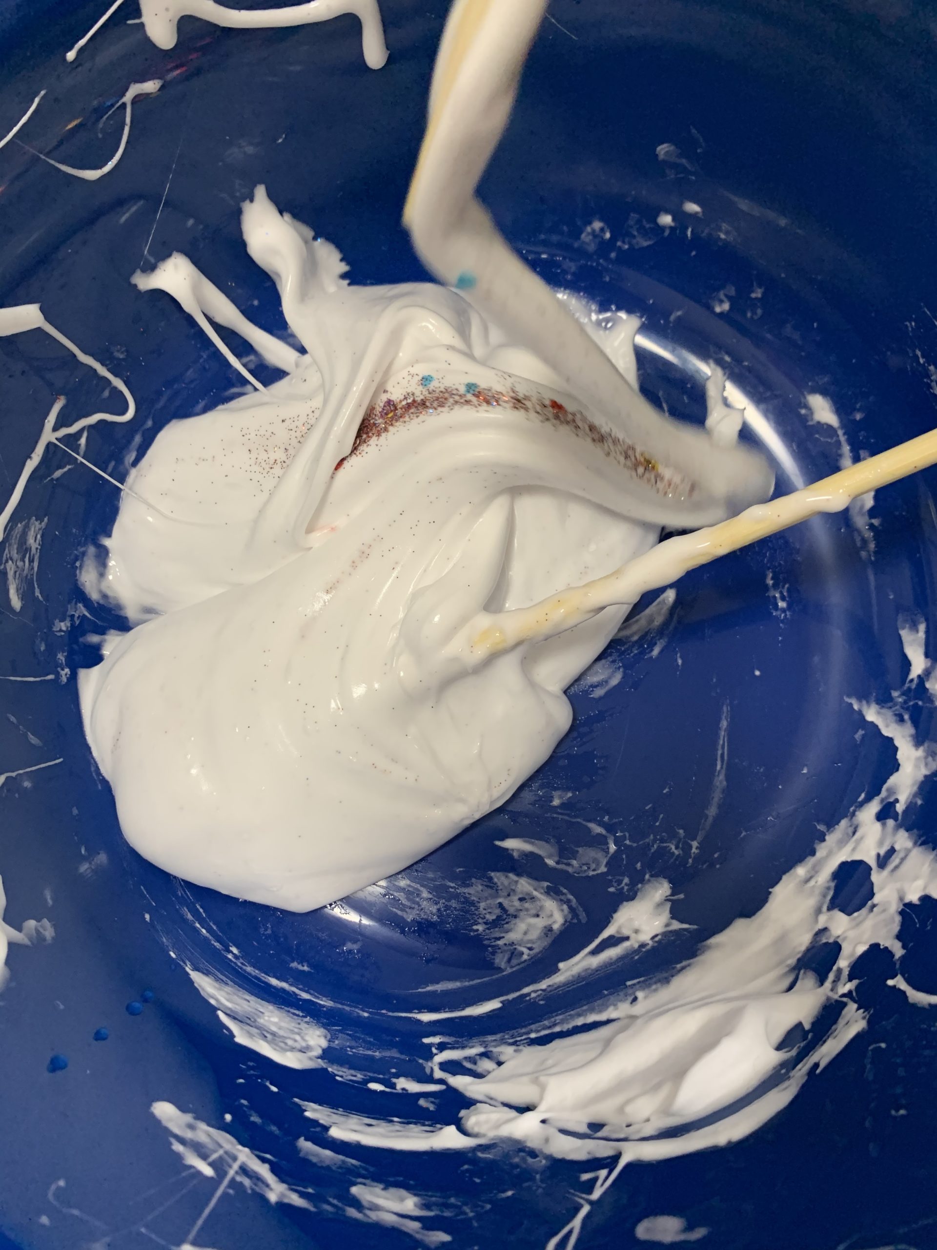 出来上がりはフワフワの綿菓子のようにも見える、スライムが完成しました。